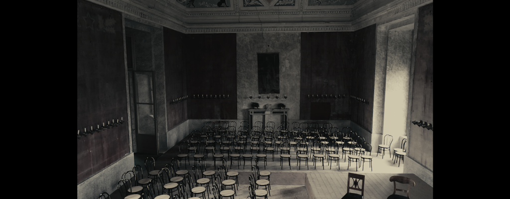 Auch die Musiker sind Teil dieser seltsamen Welt – durch ihren Klang, ihre physische Präsenz und ihr Bild. Nach und nach erscheinen weitere Figuren auf der Leinwand. Sind es Projektionen? Werden reale Menschen in Simulakren verwandelt? Nichts ist sicher. Was hier verfolgt wird, ist eine starke Mehrdeutigkeit, die zu einer unmöglichen Gewissheit über die Definition dieser Präsenzen führt.