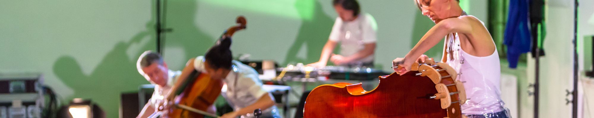…Einen weit stärkeren Eindruck hinterließ das zweite szenische Projekt von „Wien Modern“, das die Choreografin Brigitte Wilfing und der in Wien lebende, venezolanische Komponist Jorge Sánchez-Chiong in einem Projektraum des Werkstätten- und Kulturhauses (WUK) entwickelten. …„Work“ entuppte sich als intelligent-doppelbödige, von Richard Sennetts „The Craftsman“ inspirierte Performance. Der Titel der knapp einstündigen Aufführung ist also durchaus wörtlich zu nehmen: Auf spielerisch-unprätentiöse Weise demonstrierten vier in durchsichtige Laborkittel schlüpfende Spieler/-innen – zwei szenisch agierende Cellist/-innen (Marie Spaemann und Roland Schueler), Wilfing als Performerin und Sánchez-Chiong an den Turntables –, dass alle Kunst auf Arbeit und auf Bewegung beruht und selbst die zu ihrer Herstellung benötigten Instrumente Resultat menschlicher Denk- und Arbeitsprozesse sind. Und: dass ein Gelingen des szenischen Bemühens nur durch Respekt vor den verwendeten Materialien und durch kommunikatives Zusammenwirken aller Beteiligten ermöglicht wird. Flüssige Musik entstand erst, als sich alle vier Spieler/-innen zu koordinieren begannen, die Performerin in Drehbewegungen mit einer in den Händen gespannten Nylonsaite über das Instrument der Cellistin strich und die Klänge der Turntables den entstehenden Rhythmen angepasst wurden – eine perfekte Symbiose zwischen Tanz, Bewegung und Klang. (Reinhard Karger, NMZ)